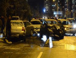 Başkent’te önceki gün etkili olan kar yağışının ardından, akşam saatlerinde bazı bölgelerde gizli buzlanma oluştu. Şehir genelinde birçok noktada kazalar yaşanırken, Turan Güneş Bulvarı üzerinde ise 2 büyük zincirleme kaza meydana geldi. Kazaların ilkinde 10 araç birbirine girdi. İddiaya göre seyir halindeki 2 otomobilin sürücüsü bir anda direksiyon hâkimiyetini kaybetti. Araçların çarpıştığını gören diğer sürücüler, kaçmaya çalışsa da kayganlaşan yolda birbirlerine girdi. Olay yerine gelen 112 Acil Servis ekipleri, yaralı bir kadını hastaneye kaldırdı. Kaza sonrası bulvar, trafiğe kapatıldı.