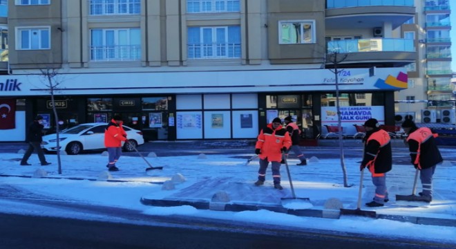 Kar yağışının yoğun olarak görüldüğü bölgelerde kar küreme ve buzlanmaya karşı çalışmalarını aksatmaksızın sürdüren Büyükşehir Belediyesi ekipleri, Malatya merkezde kar yağışı nedeniyle kaldırımlarda temizleme ve buzlanmaya karşı tuzlama çalışmalarına aralıksız devam ediyor.