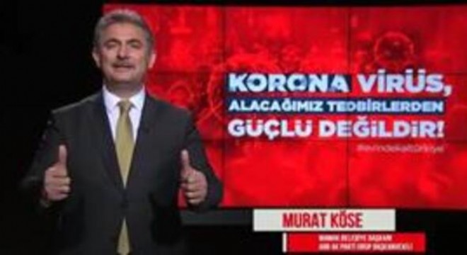 Ankara’daki AK Partili ilçe belediye başkanlarının yer aldığı klipte “Evinde kal” mesajı verildi. Sosyal medyada yayımlanan Klip, Ankara Büyükşehir Belediye (ABB) Meclisi AK Parti Grup Başkanvekili Mamak Belediye Başkanı Murat Köse’nin “Dünyayı etkisi altına alan koronavirüs covid-19’a karşı birlikte mücadele etmeliyiz. Evinde kal Mamak” konuşmasıyla başlıyor.