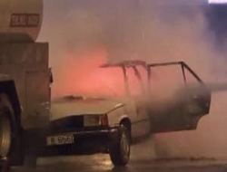 Çarpmanın etkisiyle otomobil yanmaya başladı.