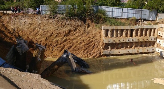 Ortadoğu Konutları’nın yanında bir firmanın inşaat çalışması için çaktığı fore kazıklar, dün gece büyük bir gürültüyle çöktü. Çökme sırasında ASKİ’nin su ve kanalizasyon boruları patlayınca göçük suyla doldu. İnşaatta çalışan iki kepçe de çökme sırasında oluşan çukura düştü. Olay yerinde güvenlik önlemi alınırken, kepçelerin göçükten çıkarılması için çalışma yürütülüyor.