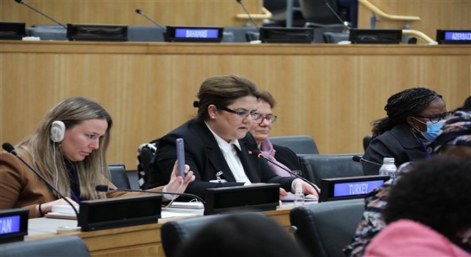 Bakan Derya Yanık, New York’ta gerçekleşen Birleşmiş Milletler (BM) Kadının Statüsü Komisyonu (KSK) 66’ncı oturumun “İklim Değişikliği, Çevre ve Afet Riskini Azaltma Politikaları ve Programları Bağlamında Kadın-Erkek Eşitliğini ve Tüm Kadın ve Kız Çocuklarının Güçlendirilmesini Sağlamak” başlıklı genel tartışmalar bölümünde bir konuşma gerçekleştirdi.