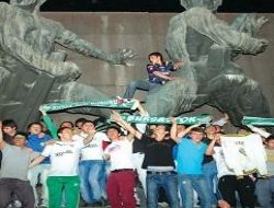 Trabzonspor-Fenerbahçe maçının bitiş düdüğüyle birlikte Başkent’te atkı ve formalarıyla caddelere akın eden Bursasporlular, kulubün tarihindeki ilk şampiyonluğu doyasıya kutladı.