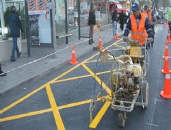 ANKARA GAZETESİ / EGO Genel Müdürlüğü, otobüs duraklarının önüne sarı şerit çizerek, durak önlerine park edilmesini engellemek amacıyla bir çalışma başlattı.
