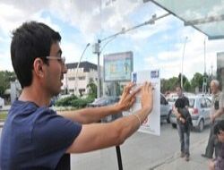 BÜYÜKŞEHİR Belediyesi EGO Genel Müdürlüğü görme engellilerin toplu taşıma araçlarını daha kolay kullanması için kapalı duraklara plakalar yerleştirerdi.