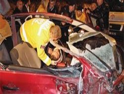 Kamyona arkadan çarpıp savrularak hurdaya dönen otomobilde bulunan sürücü ağır yaralandı.