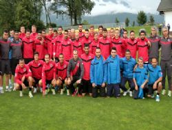 ANKARA / Bled kasabasındaki kamp merkezine yerleşen kırmızı-siyahlıların ilk çalışması neşeli geçti. Öğlen hava yoluyla Ljubjana’ya gelen takım, yarım saatlik otobüs yolculuğu ardından sonra kamp yapacağı otele yerleşti. Günün tek antrenmanını akşam gerçekleştiren oyuncular, Teknik Direktör Mustafa Kaplan ve yardımcıları gözetiminde hırslı bir çalışma gerçekleştirdi.