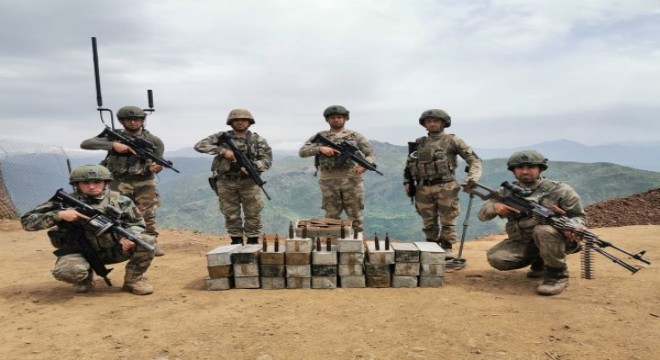 Hakkari'nin Çukurca ilçesindeki bir mağarada, çok sayıda mühimmat bulundu.