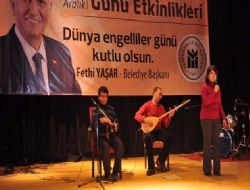 ANKARA / Belediye personeli fiziksel engelli Oğuz Mucurluoğlu, Şiir İçi Şarkılar Programı yapımcısı ve sunucusu Haluk Çetin’le sahne aldı. Otistik çocuklar ritim grubunun gösterileri izleyenlerden alkış alırken Yenimahalle Belediyesi Engelliler Dans Grubu’nun lirik dans ve İspanyol solo dans gösterisi büyüledi. TUBİL Çocuk Halk Dansları Topluluğu ise halk oyunlarından bir potpuri sundu. Gecenin sonunda görme engelli bir çiftin verdiği mini konserde tüm davetliler ritim tutup, şarkılara hep bir ağızdan eşlik etti. Yenimahalle Belediye Başkanı Fethi Yaşar, “Sosyal bir devlette yaşam hakkı sağlıklı insanların olduğu kadar engelli kardeşlerimizin de hakkı. Bir yönetici olarak eşit yurttaş ilkesi gereği tüm vatandaşlarımıza eşit mesafede hizmet götürüyoruz” dedi.ANKARA /