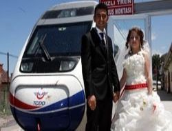 Bunun üzerine gelinlik ve damatlık giyip YHT ile Ankara’dan Eskişehir’e gelme kararı aldık. Gelin aracı olarak YHT’yi kullandık. Vatandaşlar, bizim Ankara Garı’na fotoğraf çektirmek için geldiğimizi sandı. Daha sonra trene binince herkes şaşırdı. YHT çalışanları bize ilgi gösterdi. Bursa’da saat 16.00’da Barış Manço Kültür Merkezi’nde nikahımız var.” Gelin Ayşe Eski de daha önce bir gelin ve damadın garda fotoğraf çektirdiğini gördüklerini bunun üzerine YHT’yi “gelin aracı” yapmak için karar aldıklarını bildirdi. Yaklaşık 1,5 yıl önce aldıkları kararı şimdi gerçekleştirebildiklerini anlatan Eski, “Nişanlım, Ankara’dan Eskişehir’e gelirken her zaman bekletirdi. İlk kez beni bekletmedi. Trendeki vatandaşlar çok şaşırdı. Bize çeşitli ikramlarda bulundular” dedi.ANKARA /