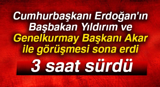 Cumhurbaşkanı Recep Tayyip Erdoğan’ın Mabeyn Köşkü'nde, Başbakan Binali Yıldırım ve Genelkurmay Başkanı Orgeneral Hulusi Akar ile yaptığı görüşme sona erdi.