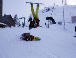 ANKARA GAZETESİ/ Kar kalınlığının 3 metreye yaklaştığı komşu kent Bolu’daki Kartalkaya Kayak Merkezi’nde snowboard eğitmenlerinin yaptığı akrobasi gösterisi büyük ilgi gördü.