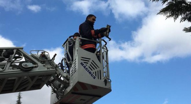 haber verdi. Olay yerine gelen Ankara Büyükşehir Belediyesi İtfaiye Dairesi Başkanlığı ekipleri, kedinin bulunduğu yerin yüksek olması nedeniyle olay yerine merdivenli itfaiye aracı çağırdı. Platformla yukarıya yükselen itfaiyeciler kediyi kurtararak özgürlüğüne kavuşturdu.