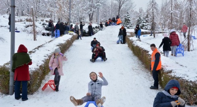 Okulların tatil olmasını fırsat bilen çok sayıda çocuk, aileleri ile kayarak karın keyfini çıkardı. Yetkililer, kar yerde olduğu sürece etkinliğin devam edeceğini belirtti.