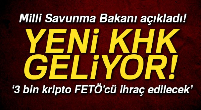Milli Savunma Bakanı Nurettin Canikli, " FETÖ'nün birinci aşama mahrem ve kripto yapısına mensup, Türk Silahlı Kuvvetleri içinde 3 bin kişilik bir yapı deşifre ettik. Önümüzdeki günlerde KHK'yle bunlar da ihraç edilecek" dedi.