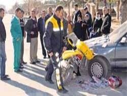 Elmadağ’da posta dağıtımı yapan Selim Yağcı’nın kullandığı motosiklete tali yoldan çıkan otomobil çarptı.