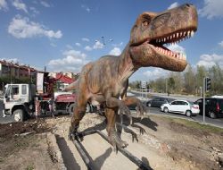 Ülke gündemine gelen ve uzun süre tartışma konusu olan robot heykeli dün akşam saatlerinden itibaren yerini, 3 metre yüksekliği ve 10 metre uzunluğundaki T-Rex dinozor heykeline bıraktı.