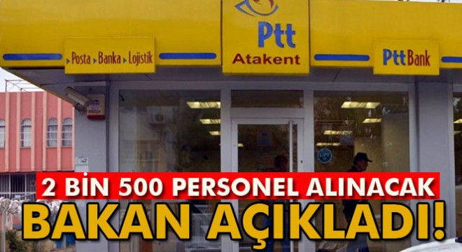 Ulaştırma, Denizcilik ve Haberleşme Bakanı Ahmet Arslan, PTT'ye 2 bin 500 yeni personel alınacağını açıkladı.
