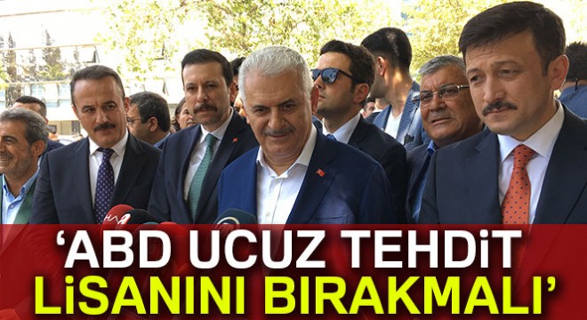 Yıldırım, İzmir'de cuma namazı sonrası gazetecilerin sorularını cevaplandırdı. Yıldırım, ABD’nin yaptırım tehdidi ile ilgili "Bize tehdit sökmez, ABD Türkiye ile ilişkilerini uzun vadede geliştirmeyi arz ediyorsa bu ucuz tehdit lisanını ırakmalı. Türkiye'yi tehdit etmeden önce Türkiye'de bir 15 Temmuz darbe girişiminin olduğunu ve bu girişimin de faili olan FETÖ'nün Amerika'da elini kolunu sallayarak hiçbir kısıtlamaya tabii olmadan muhafaza edildiğini de unutmamalıdır. Amerika bir hukuk devletiyse, Türkiye de bir hukuk devletidir. Dolayısıyla hukukun kararına saygı göstermek durumundadır. Bizim tavsiyemiz artık bu ucuz tehdit lisanını Amerika'nın bırakması ve Türk halkının güvenini nasıl kazanacak, 15 Temmuz'dan sonra bunun yollarına bakması gerekir" dedi.