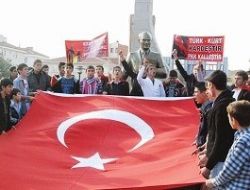 Cumhuriyet Meydanı Atatürk Anıtı önünde bir araya gelen 13-18 yaş grubu 250 genç, PKK terör örgütü aleyhine sloganlar atıp, hep birlikte İstiklal Marşı okudu.