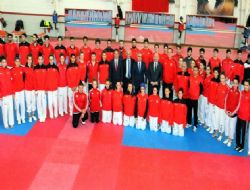 Türkiye’nin 4 bir yanından gelerek Ankara’da kampa giren genç ve büyükler tekvando milli takımlarını, 63. Hükümetin Kültür ve Turizm Bakanı Yalçın Topçu ile AK Parti Ordu Milletvekili Metin Gündoğdu, ziyaret etti. Türkiye genelinde yapılan müsabakalarda birinci ya da ikinci olarak dereye giren sporculardan oluşan 75 kişilik kafile, Hollanda’da düzenlenecek olan şampiyona için Ankara’da çalışmalarını sürdürüyor. Türkiye’ye madalya getirmek için hazırlıklarını sürdüren milli sporcular ile bir araya gelen Topçu, şunları söyledi: “Sporcularımızın tekvandodaki başarılarıyla gurur duyuyoruz. Cumhurbaşkanımız da milli sporcularımızı yakından takip ediyor. Sizler 1 milyar 500 bin kişilik Türk-İslam coğrafyasını temsil ediyorsunuz. Göğsünüz de bayrağımızı taşıyorsunuz. Bayrağımızı göndere çektirmek için ter döküyorsunuz. Biz de devler olarak sizlerin arkasındayız. Önünüzde önemli şampiyonalar var. Her birinize ayrı ayrı başarılar diliyorum.”