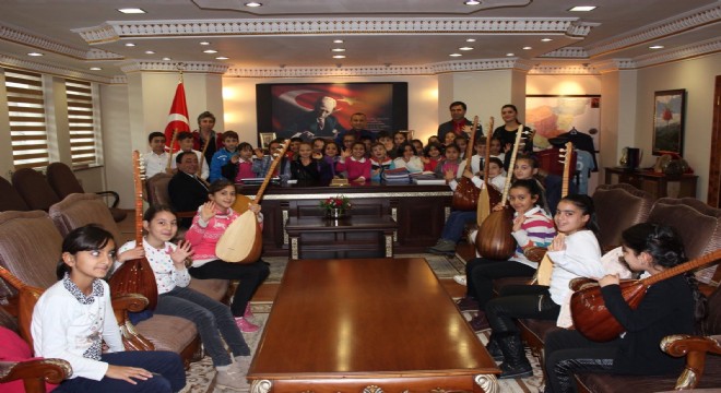 Ellerinde sazları ile birlikte Valiyi makamında ziyaret eden öğrenciler, tüm hünerlerini gösterdi. Elif ve arkadaşları da Valinin makamında oturarak  hatıra fotoğraf çektirdi. Vali Sonel öğrencilere, "Derslerinize iyi çalışın, öğretmenlerinizi, anne ve babanızı üzmeyin. İleri ki hayatınızda hangi mesleği seçerseniz seçin, insanlığa faydalı olacak işler yapın dedi.