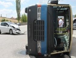 Yolcu minibüsüne çarpıp devirdi