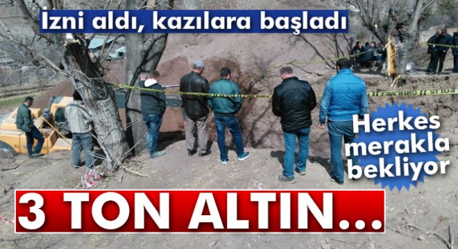 30 gün süre aldıkları öğrenilen Barış Demirci, İbrahim Demirci, Ahmet Özer, İbrahim Demirci ve ve 2 yabancı uyruklu kişinin define araması yaptırttığı bölgede 3 ton altın olduğu iddia ediliyor. İlk etapta 12 metre aşağıya doğru kazı yapılacağı ve ardından ellerindeki haritaya göre bir tünele ulaşılacağı öğrenildi. Dün başlayan kazılarda ilk 7 metre tamamlandı. Bugün sabahın erken saatlerinde başlayan çalışmalarla günün sonunda 12 metrelik kazının tamamlanacağı düşünülüyor.